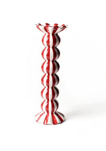 Red Stripe Ruffle Knob Candle Holder - Medium