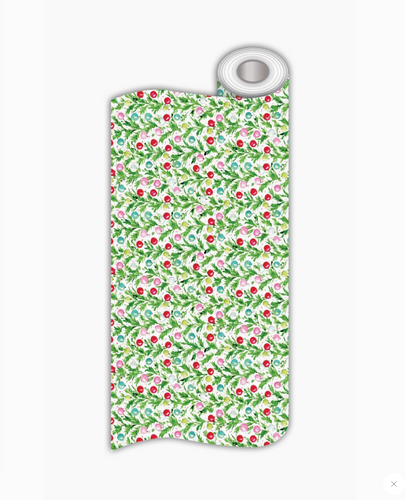 Green Holly & Colorful Ornaments Wrapping Paper - Rosanne Beck