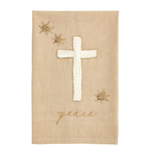 Cross Embroidered Beaded Tea Towel