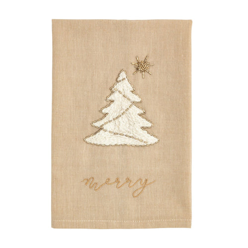 Tree Embroidered Beaded Tea Towel