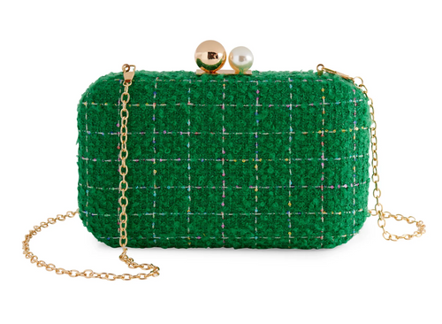 Mable Tweed Clutch - Green