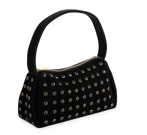 Adele Velvet Studded Shoulder Bag - Black