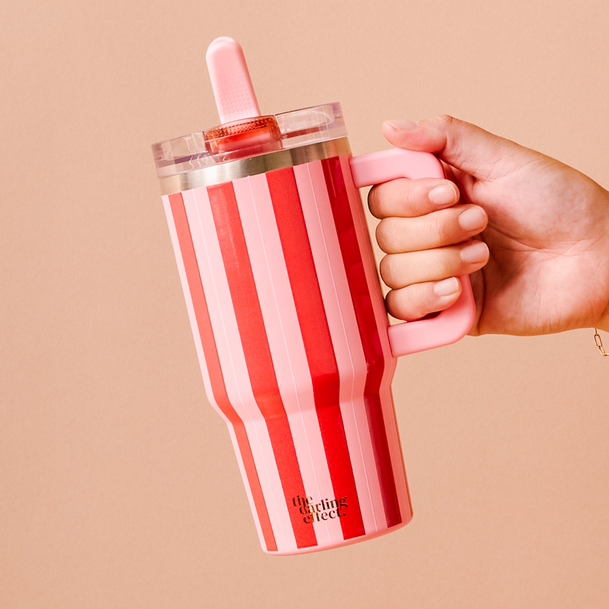 20oz Lifestyle Flip Straw Tumbler - Peppermint Stripes