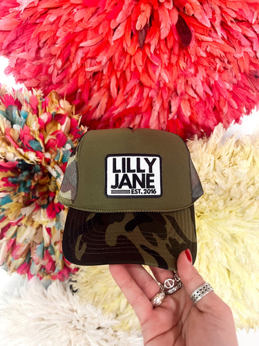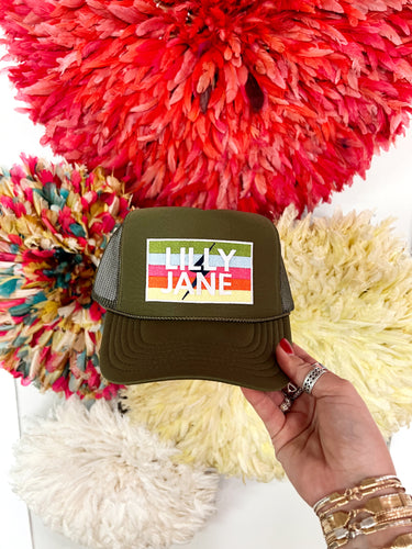 Lilly Jane Lightening Bolt Trucker Hat- Olive