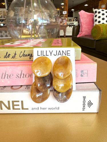 Acrylic Oval Overlap Dangle Earrings - Brown