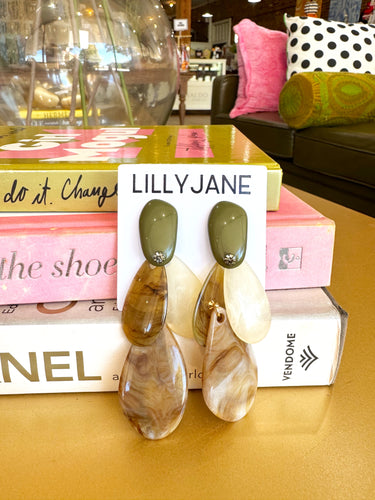 Acrylic Teardrop Dangle Earrings - Olive Multi