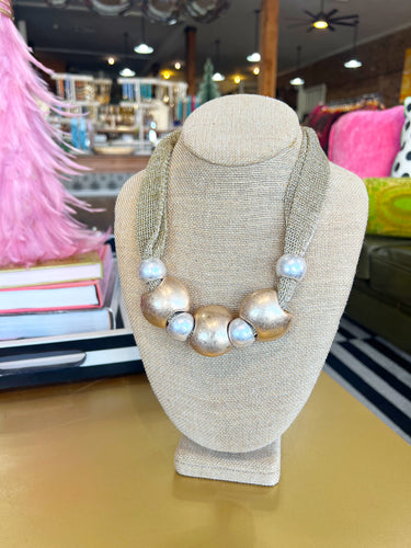 Two Toned Chunky Beaded Mesh Necklace
