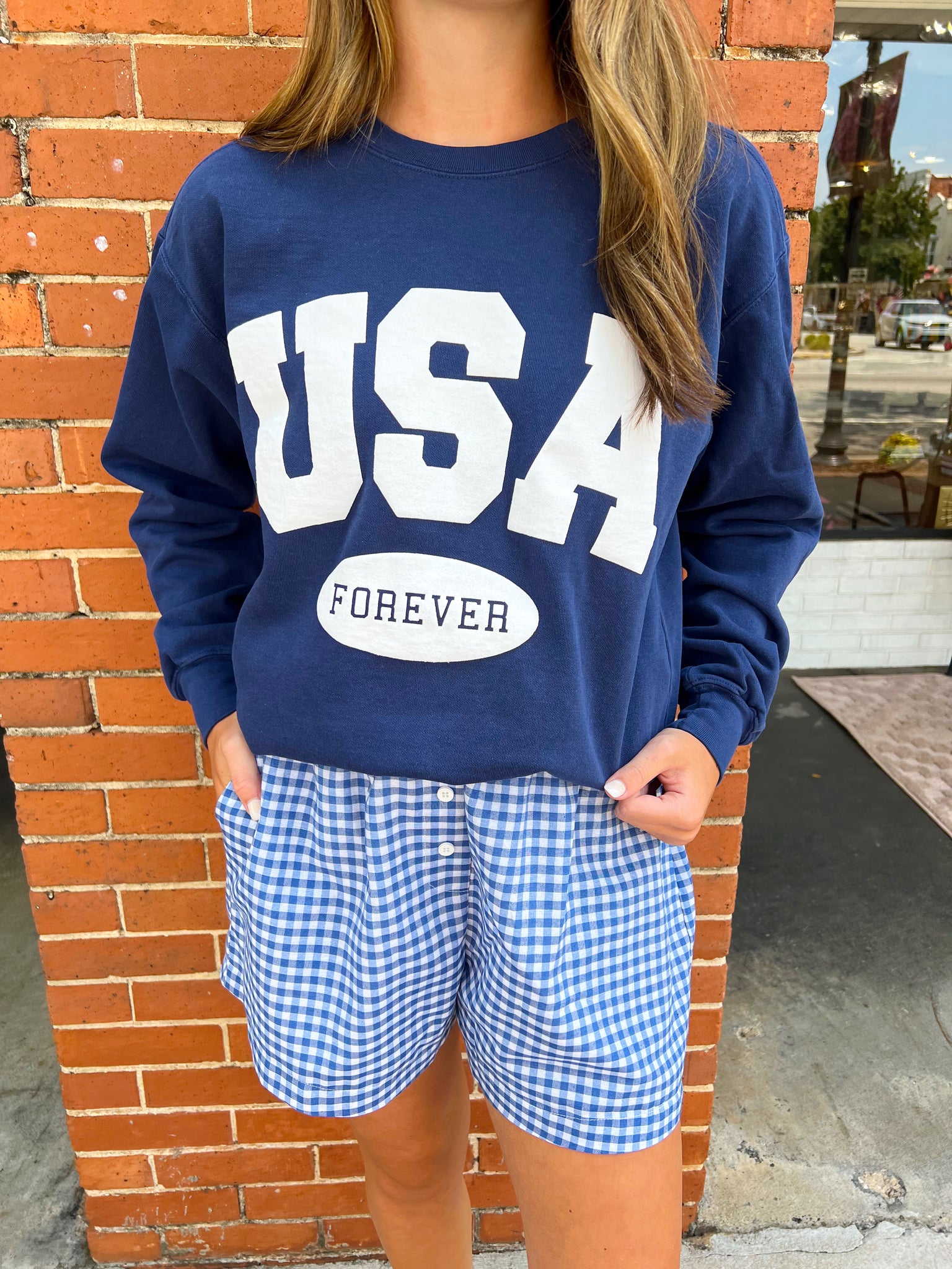 Friday + Saturday Comfort Colors Sweatshirt with USA Forever Puff Print