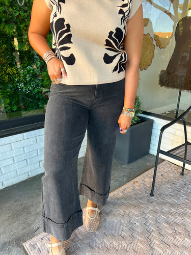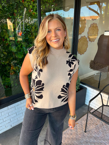 Birdie Floral Mock Neck Knit Sweater Top- Taupe
