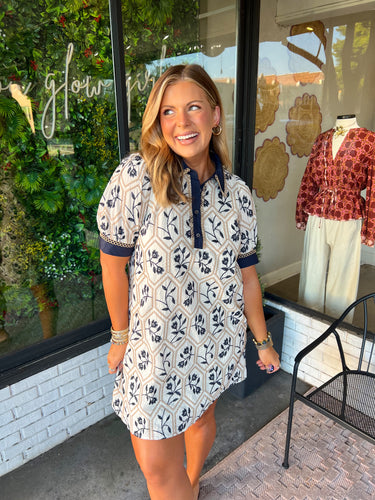 Magnolia Floral Embroidered Mini Dress - Navy/Taupe