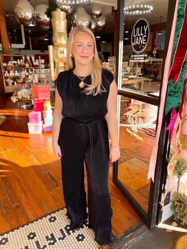 Elyssa Metallic Pleated Jumpsuit - Gold
