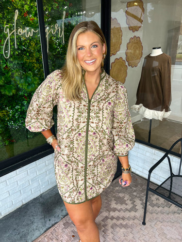 Murray Floral Zip Up Mini Dress- Taupe
