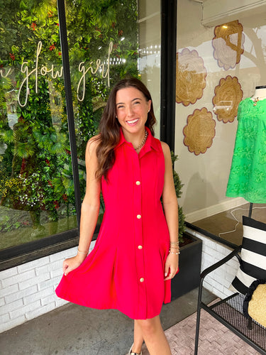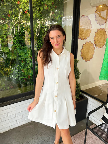 Embry Linen Scallop Button Up Mini Dress- Navy