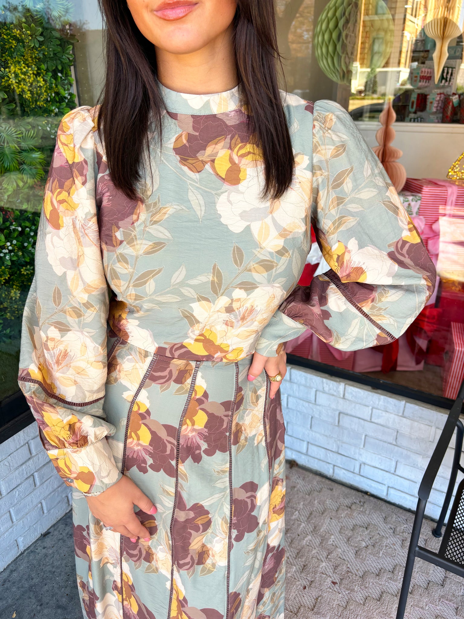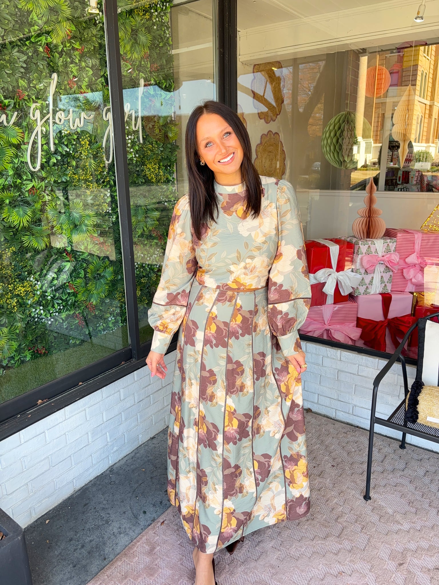 McKay Watercolor Floral Maxi Skirt Set- Sage