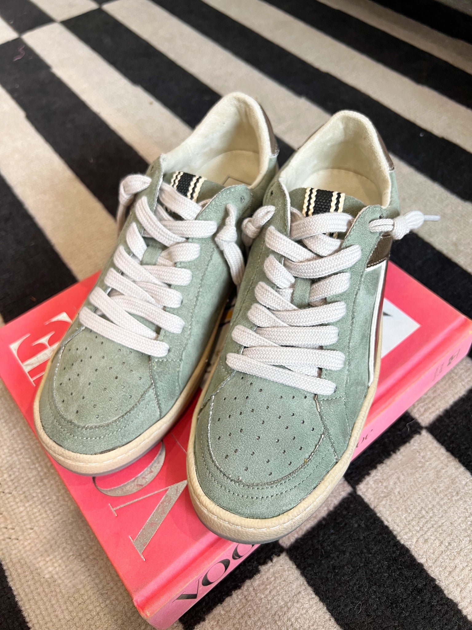 Meet SALMA in Sage a cool-toned dream with earthy energy and a twist of glam. The soft green faux suede is paired with a bronze-toned metallic detail that curves along the sides for a subtle statement. Elevated with a neutral platform sole and creamy accents, this sneaker brings an effortlessly elevated vibe to relaxed denim, tonal fits, or cozy neutrals. Clean, bold, and ready to take you anywhere.